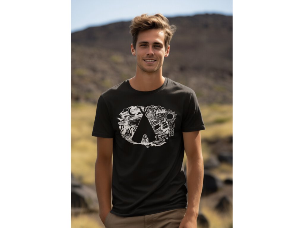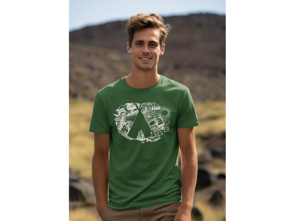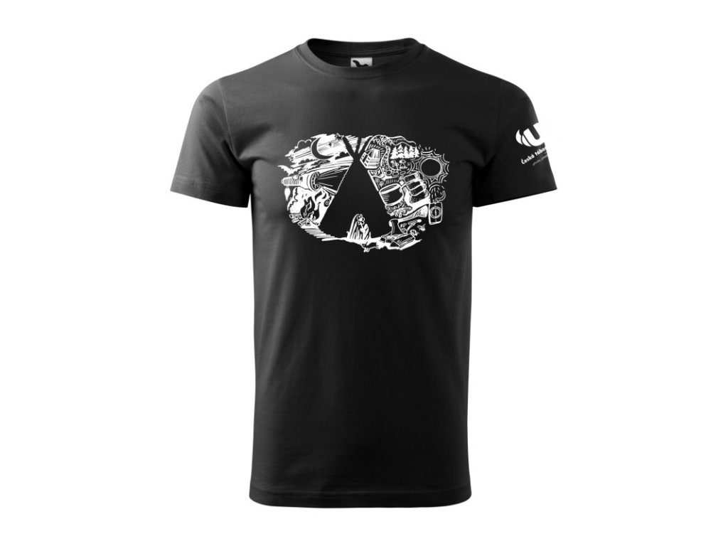 Bavlněné tričko s motivem tábornického vybavení a teepee.