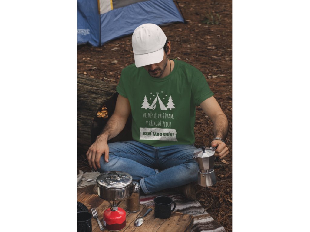 Bavlněné tričko s nápisem Ve městě přežívám... Součástí trička je potisk logem na levém rukávu.